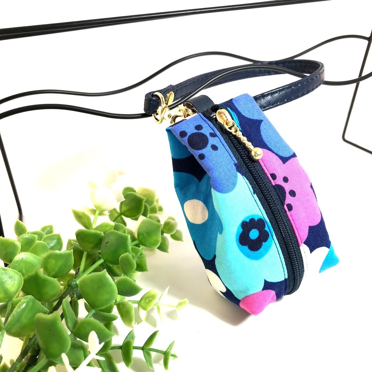 ストラップ付きミニポーチ フラワー