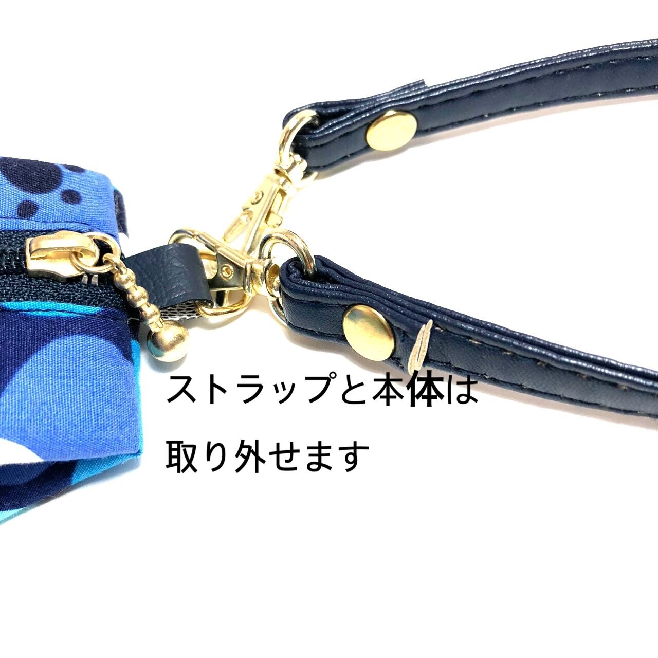 ストラップは紺色の合皮です。