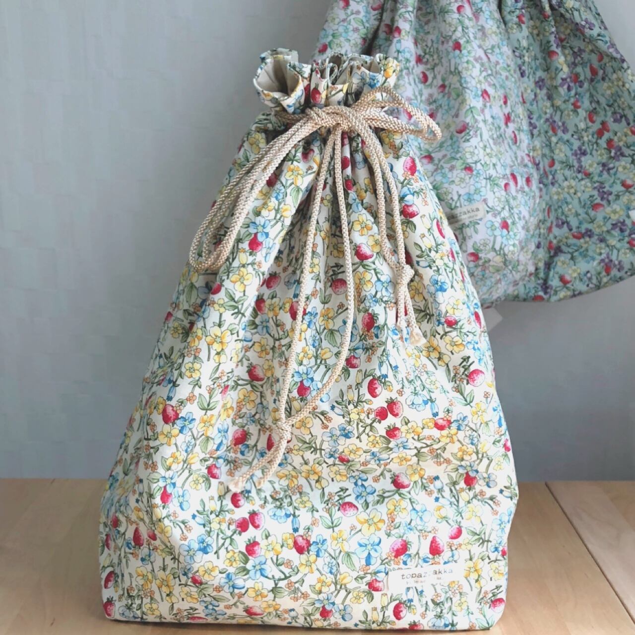 大きめ巾着 ストロベリー