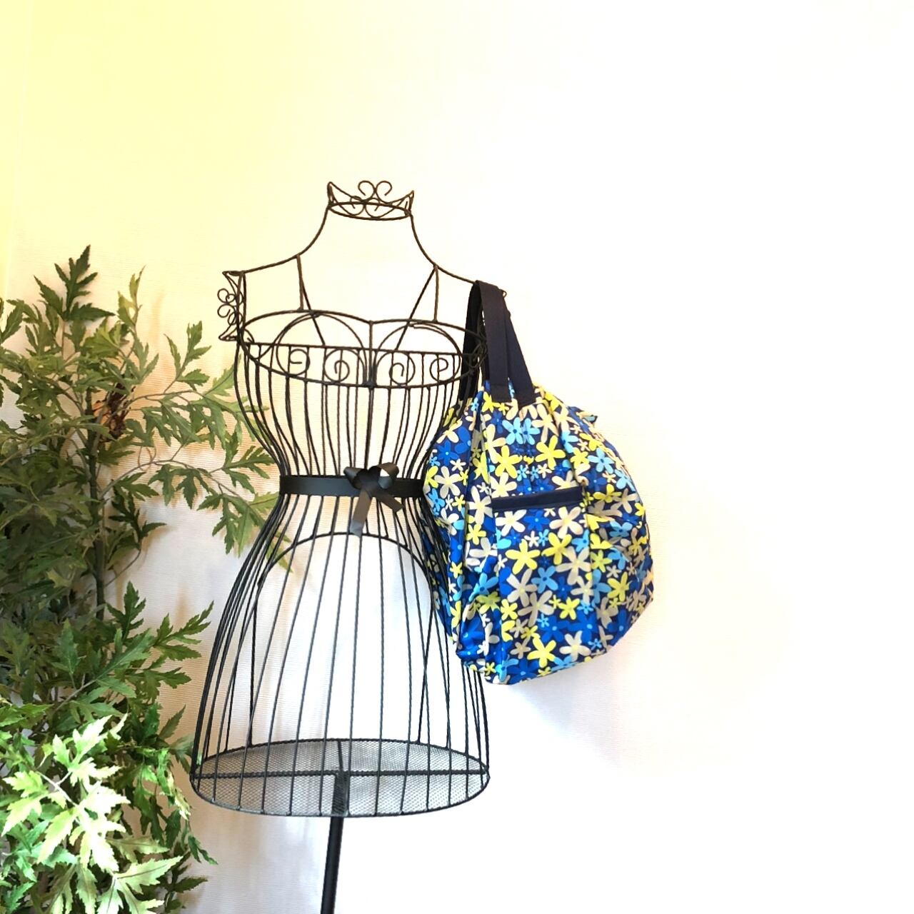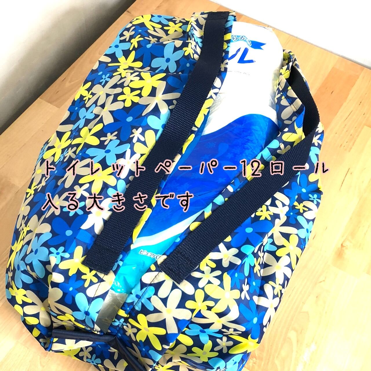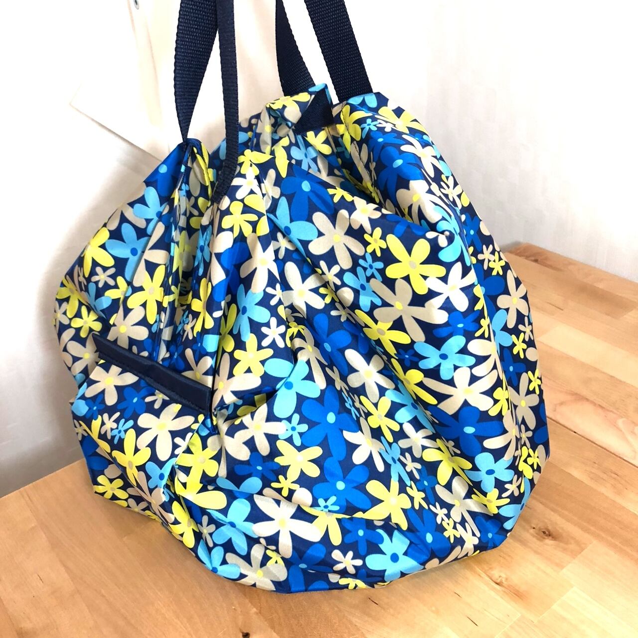 エコバッグ Mサイズ 花柄 ネイビー×ブルー