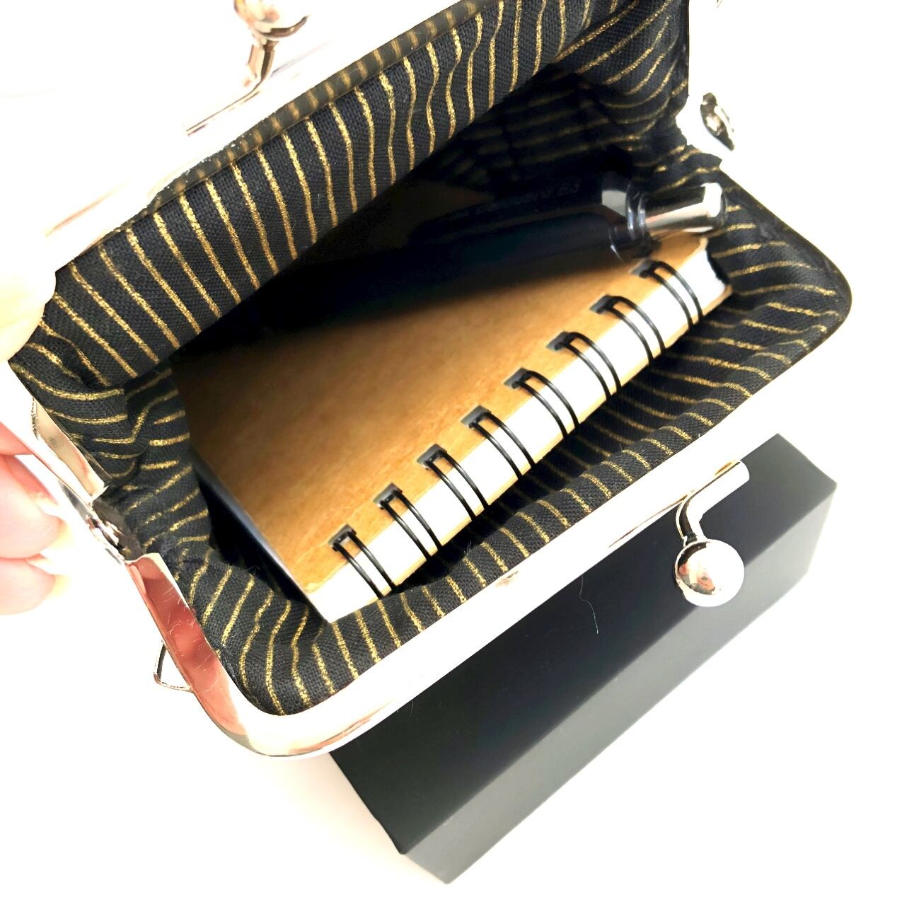 メモ帳とペンをいれて写真を撮ってみましたので、サイズ感の参考にしてください!