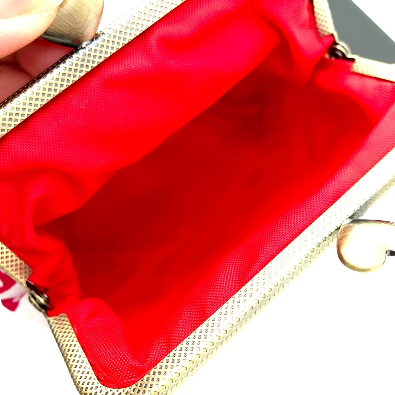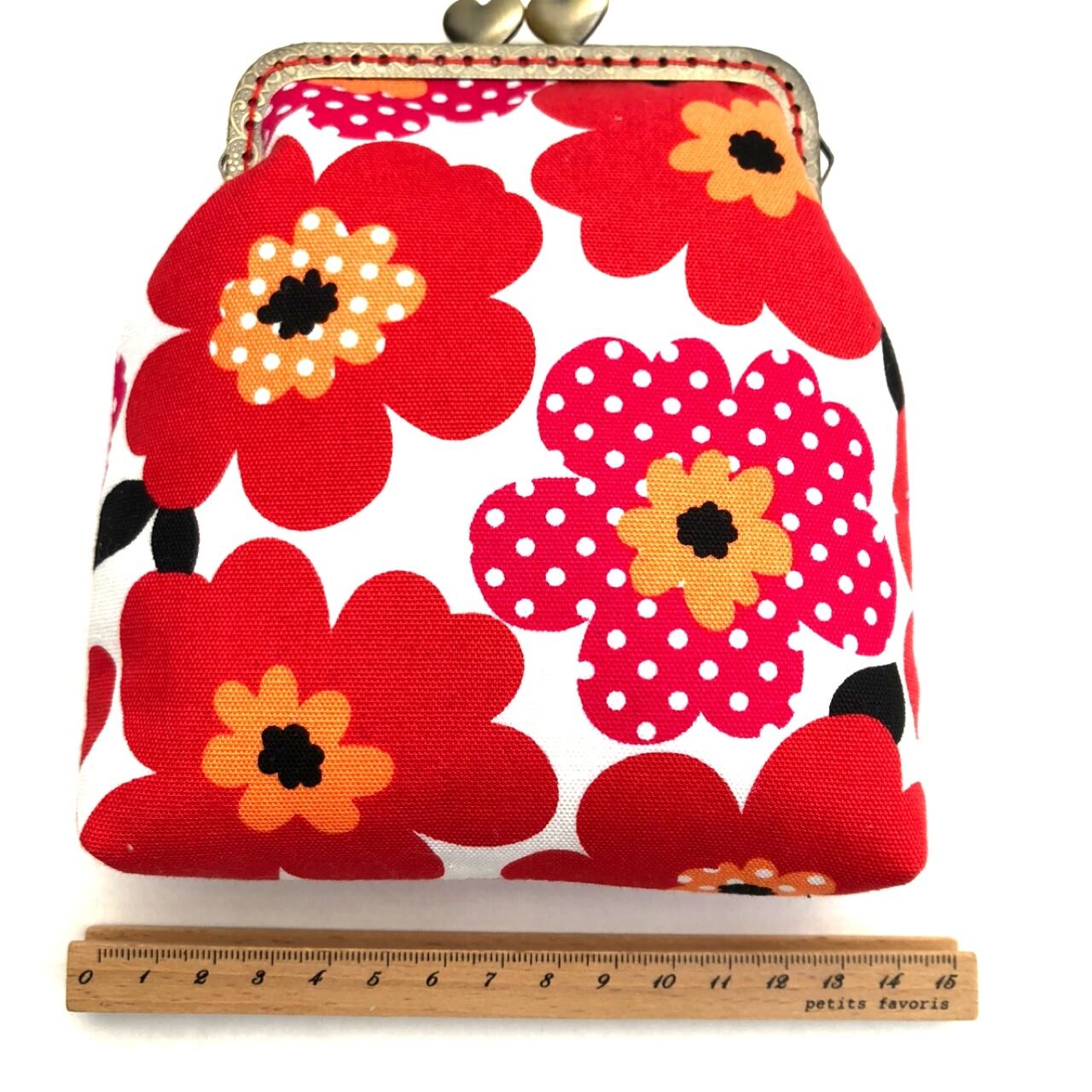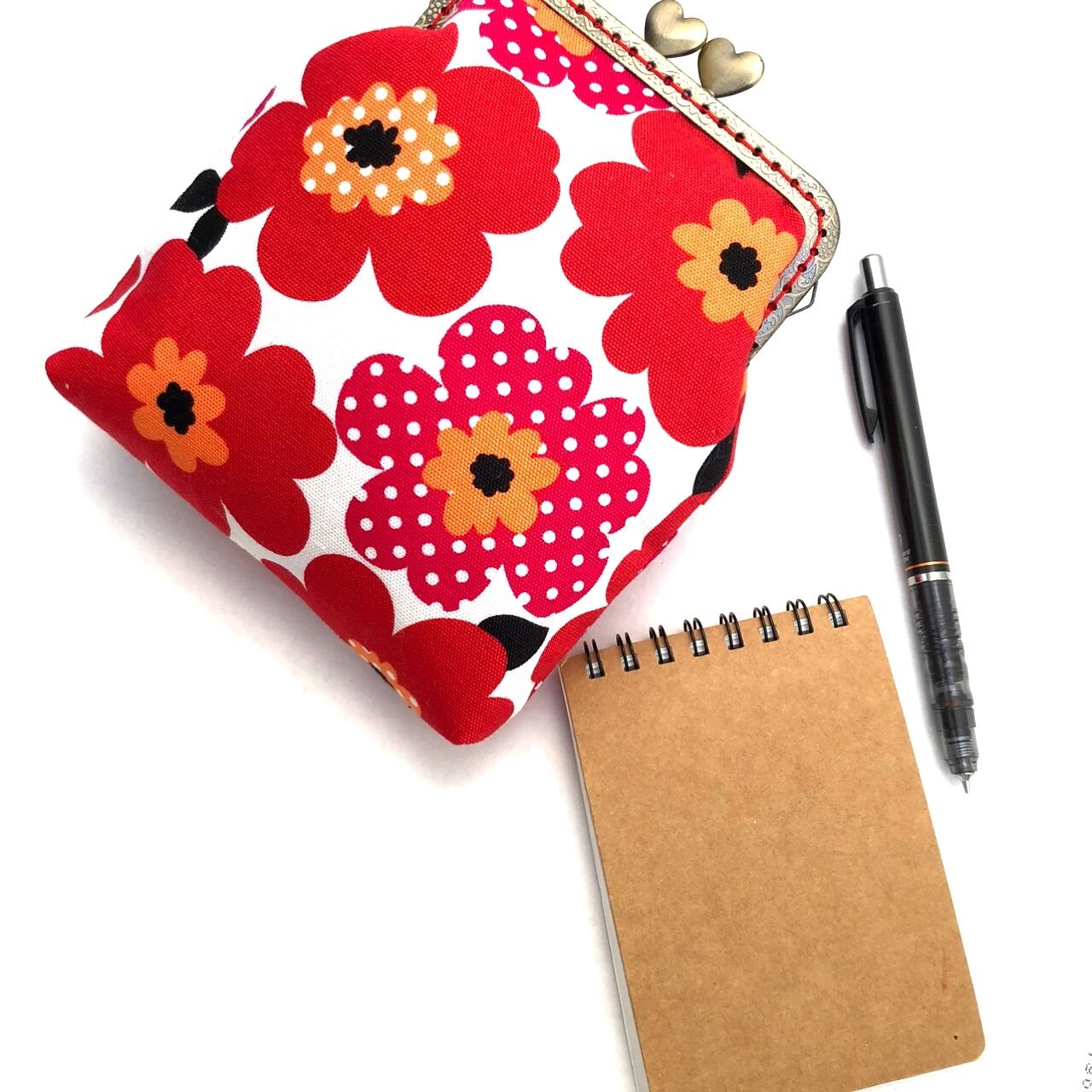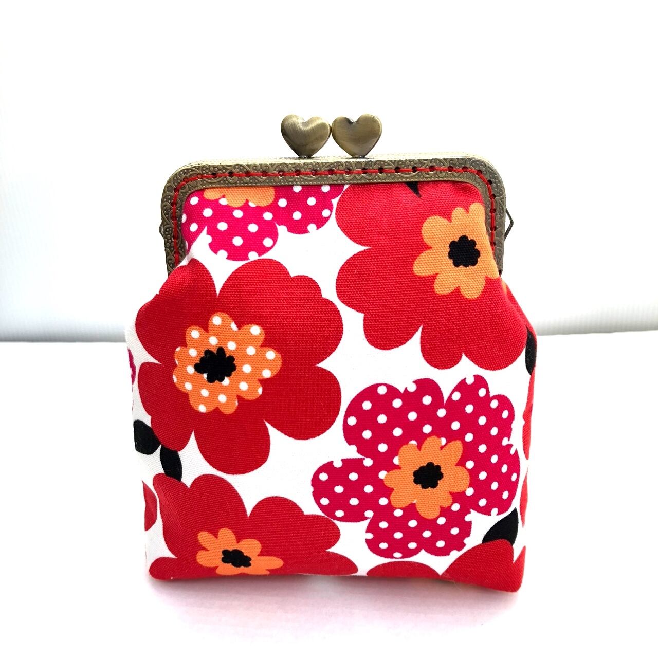 がま口ポーチ 北欧花柄 赤