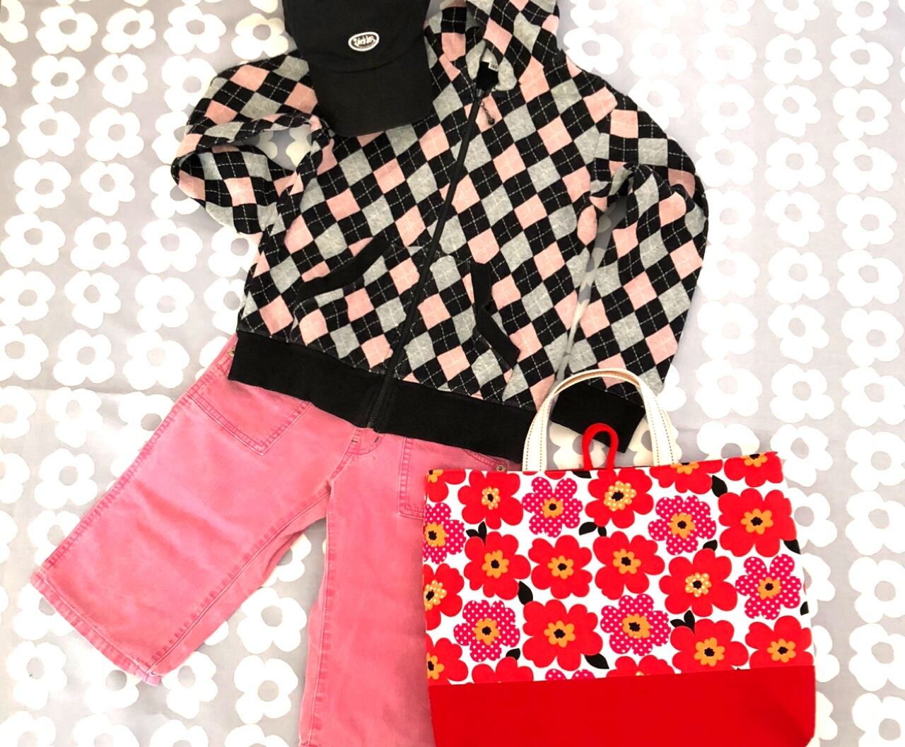 レッスンバッグ 手提げかばん 北欧赤花柄