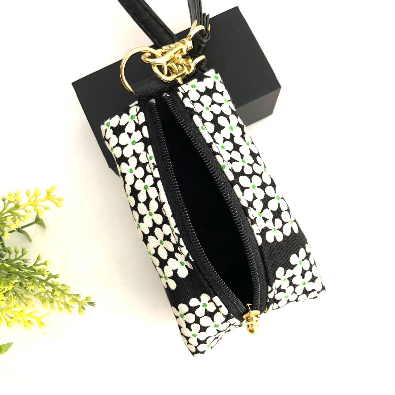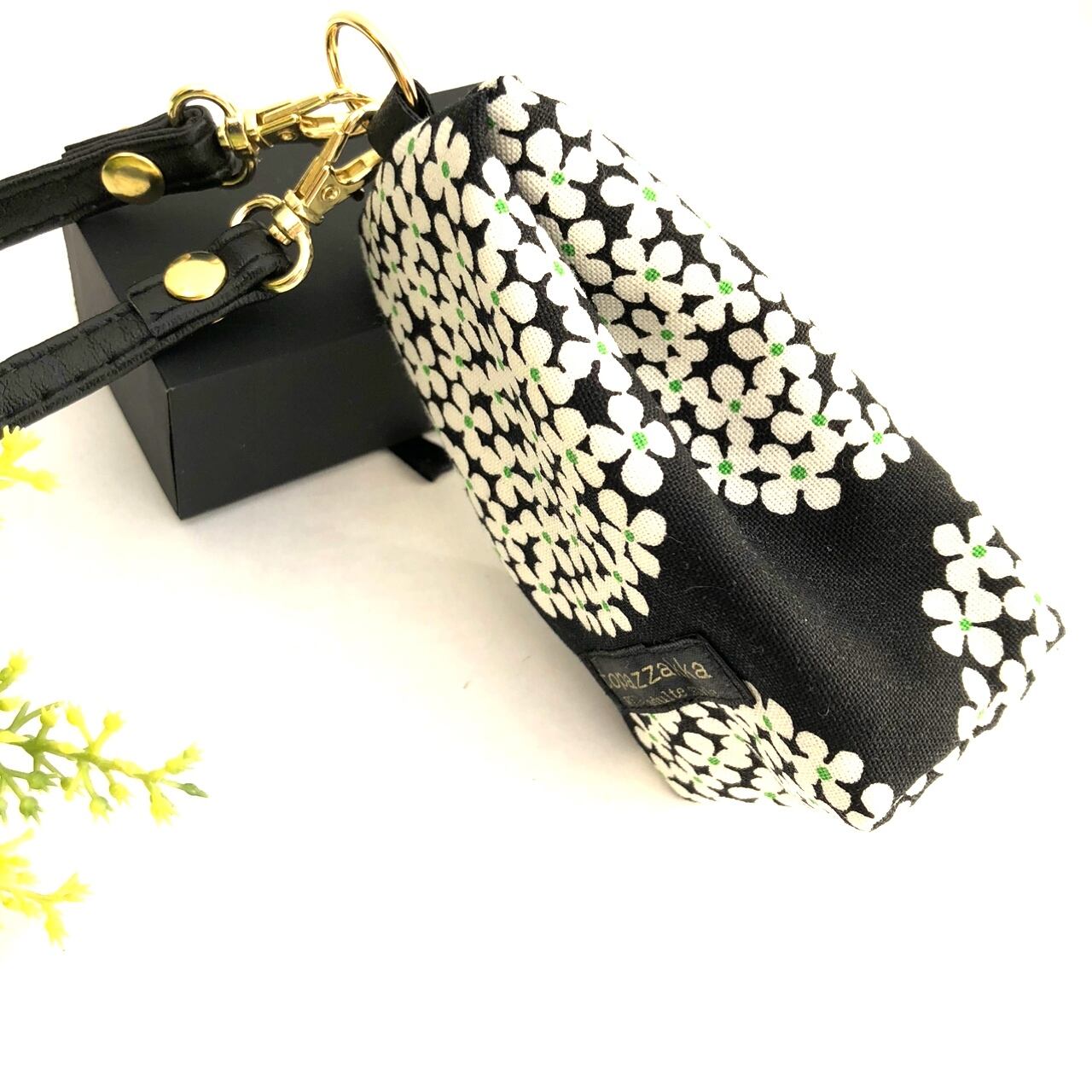 ストラップ付きミニポーチ 黒あじさい柄