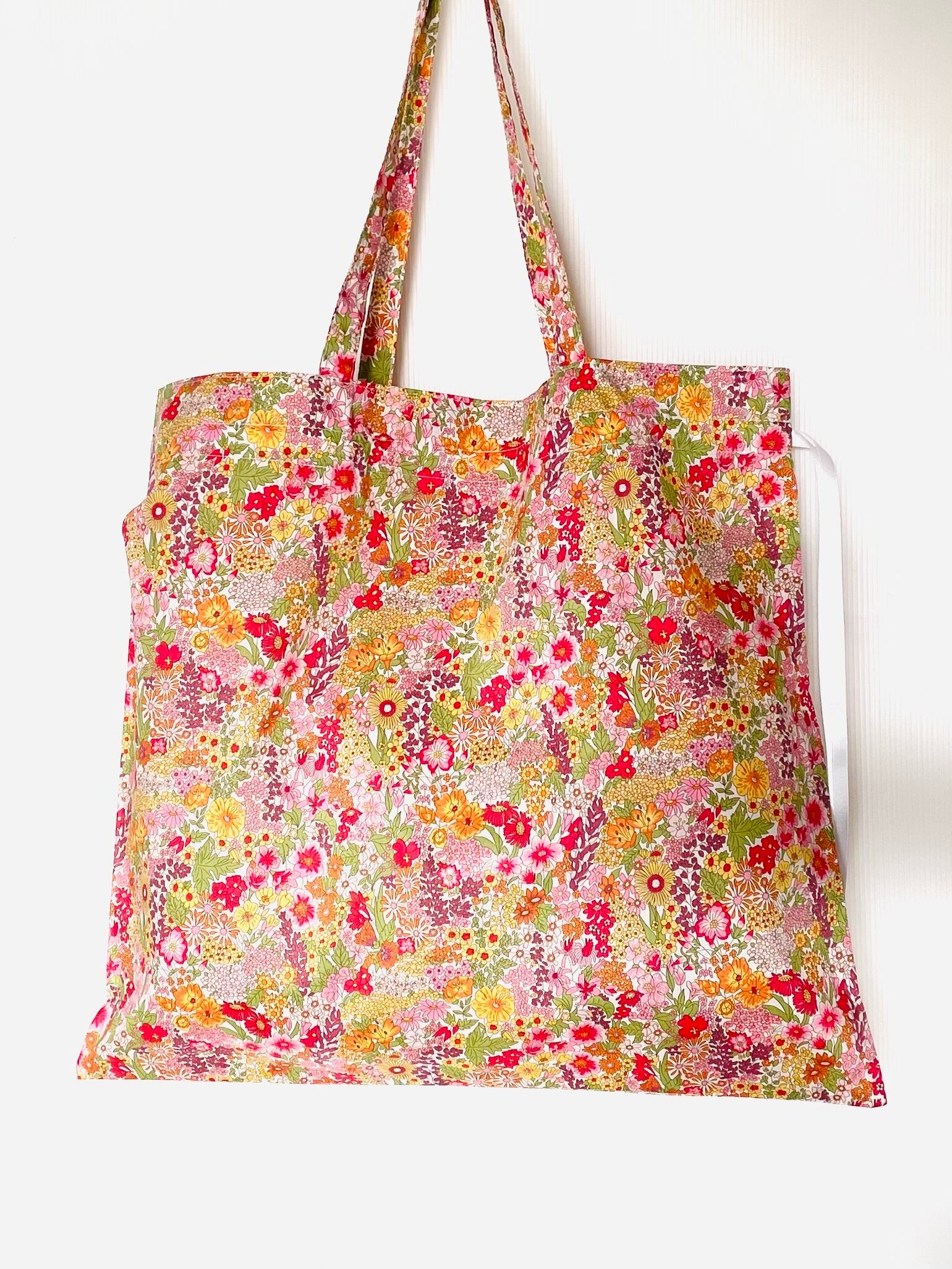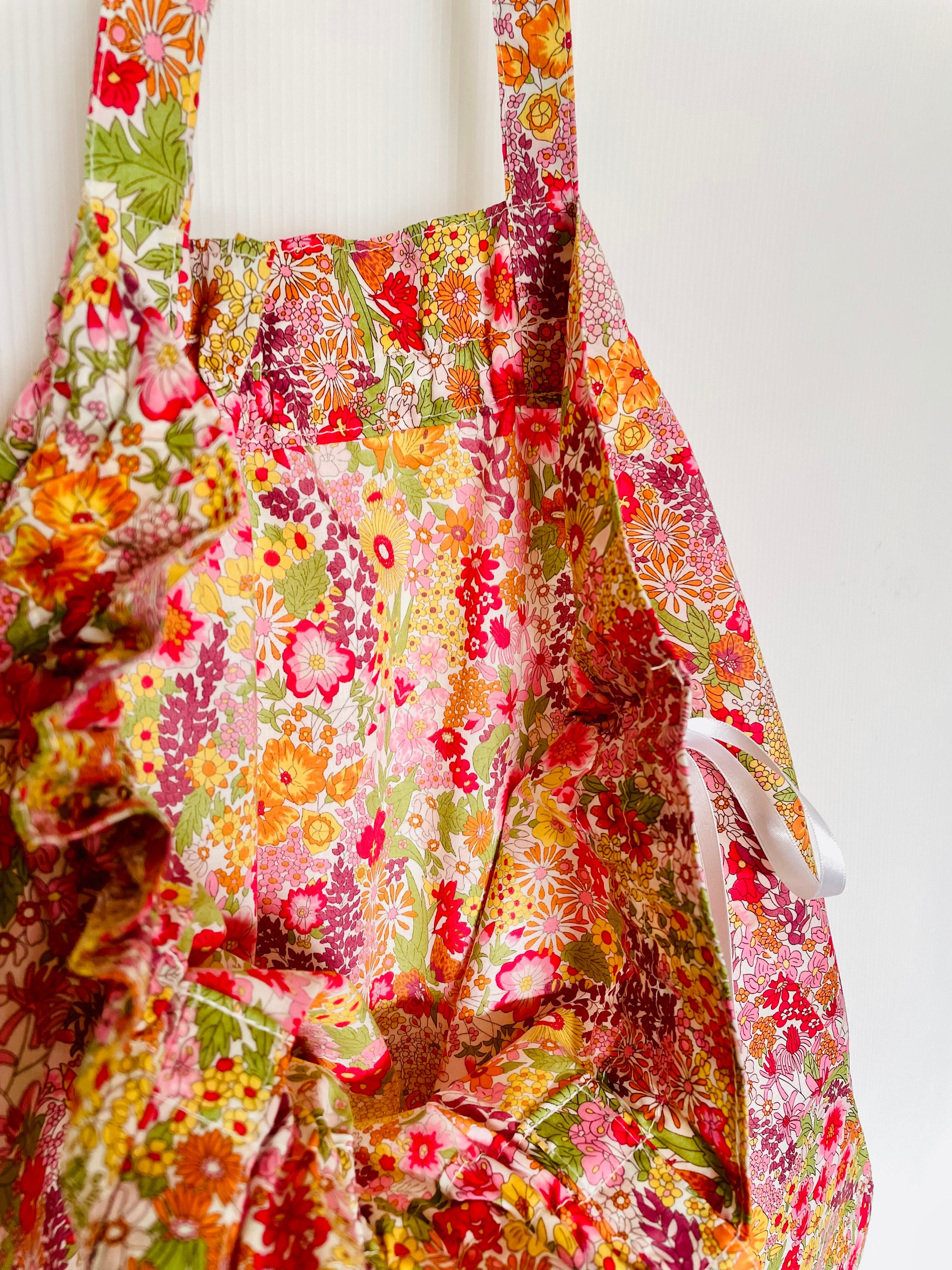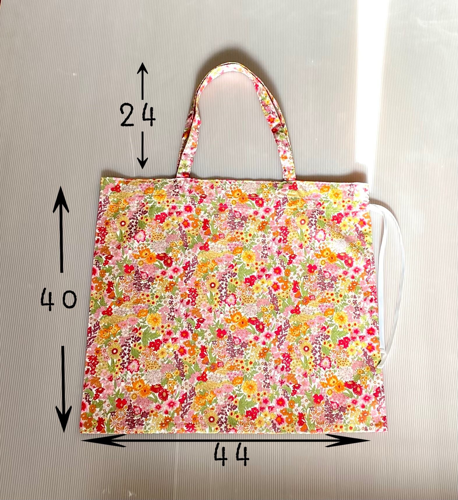 リバティプリントのリボン巾着バッグマーガレットアニー